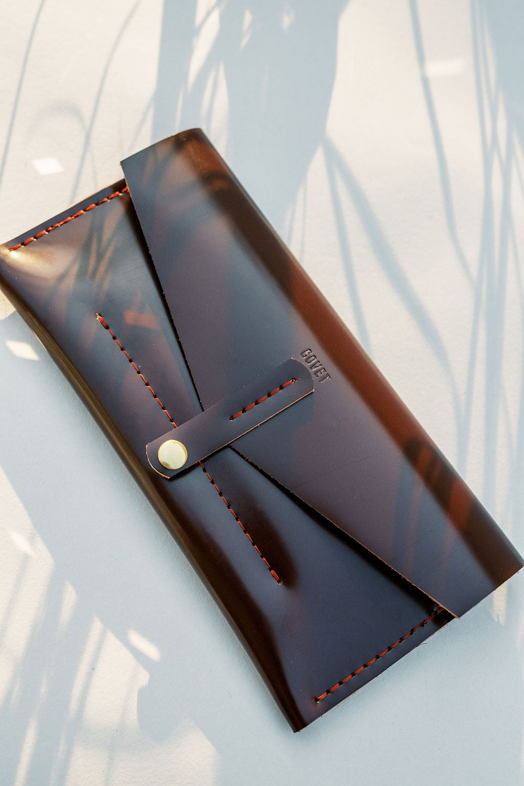 Created with full grain leather; the finish is luscious and silky with a natural grain. Oils allow the leather to remain supple and soft from the start. OR, try something a little more sultry with a burgundy patent leather.