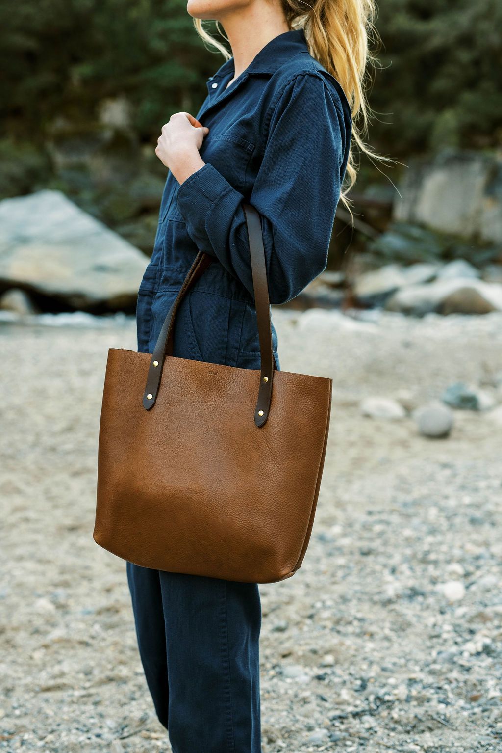 Created with full grain leather; the finish is luscious and silky with a natural grain. Oils allow the leather to remain supple and soft from the start. Available in 4 colors.