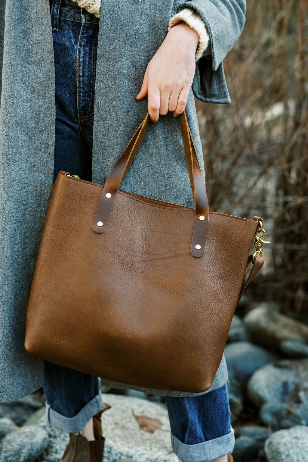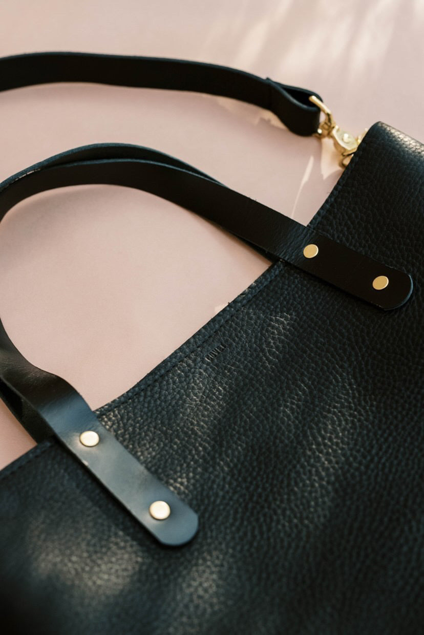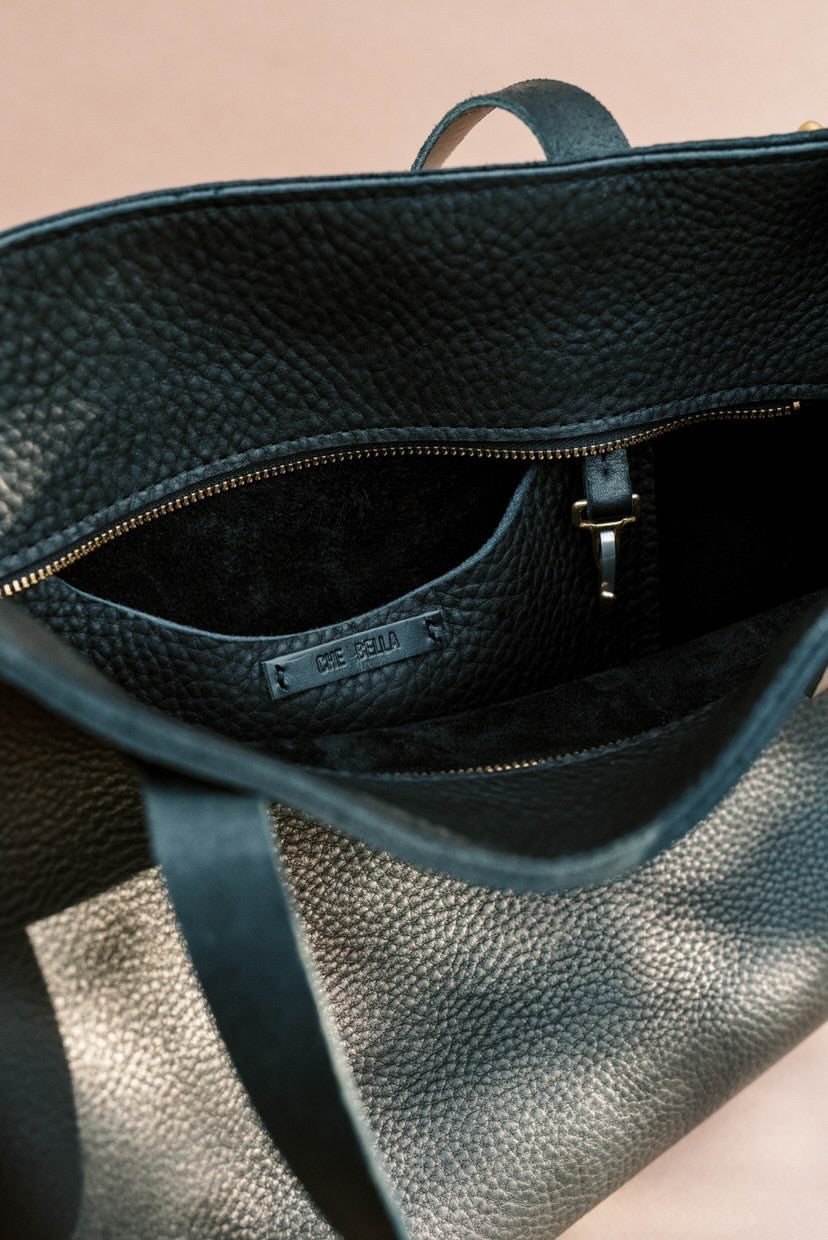 Luscious and silky with a natural grain; the oils allow the leather to remain supple and soft from the start. Tote handles made from a smooth pull-up leather which are kind to the hands.